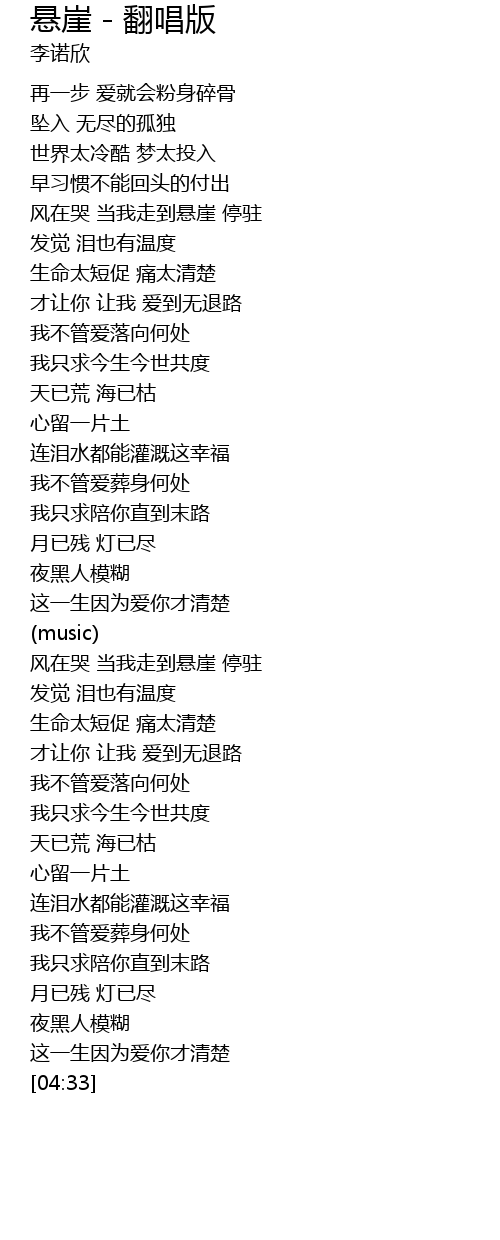 | [00:59] | 风在哭 当我走到悬崖 停驻 |
