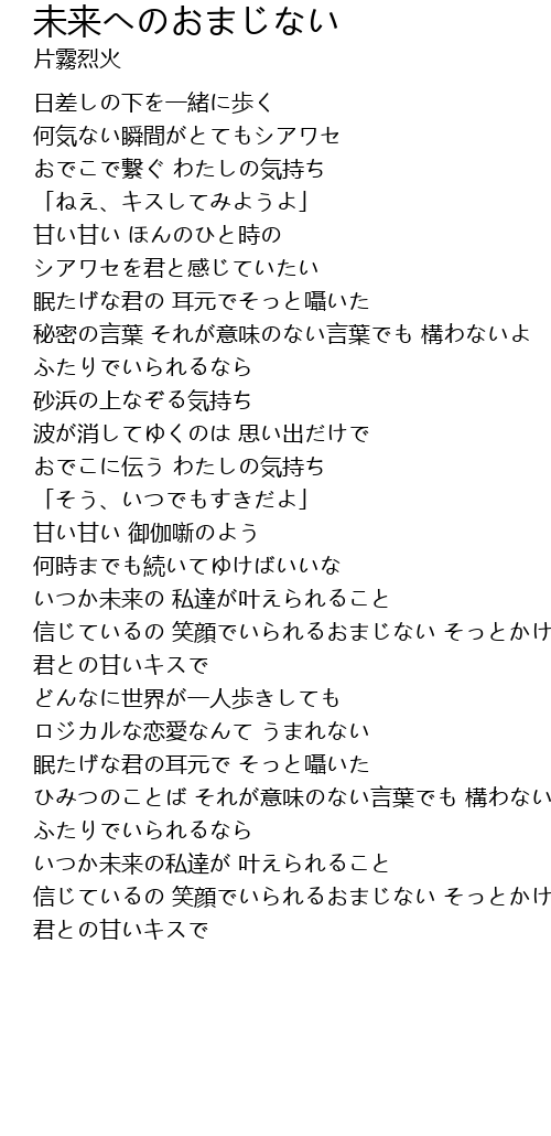 | 信じているの 笑顔でいられるおまじない そっとかけて | |