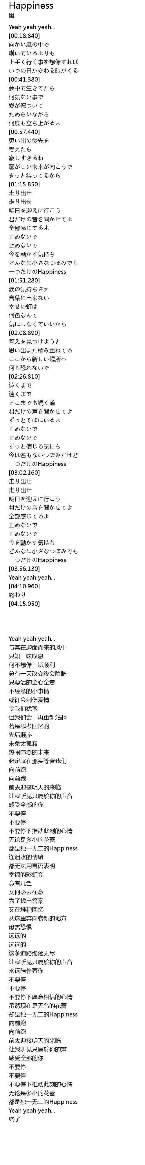 | [03:51.300] | 一つだけのHappiness |