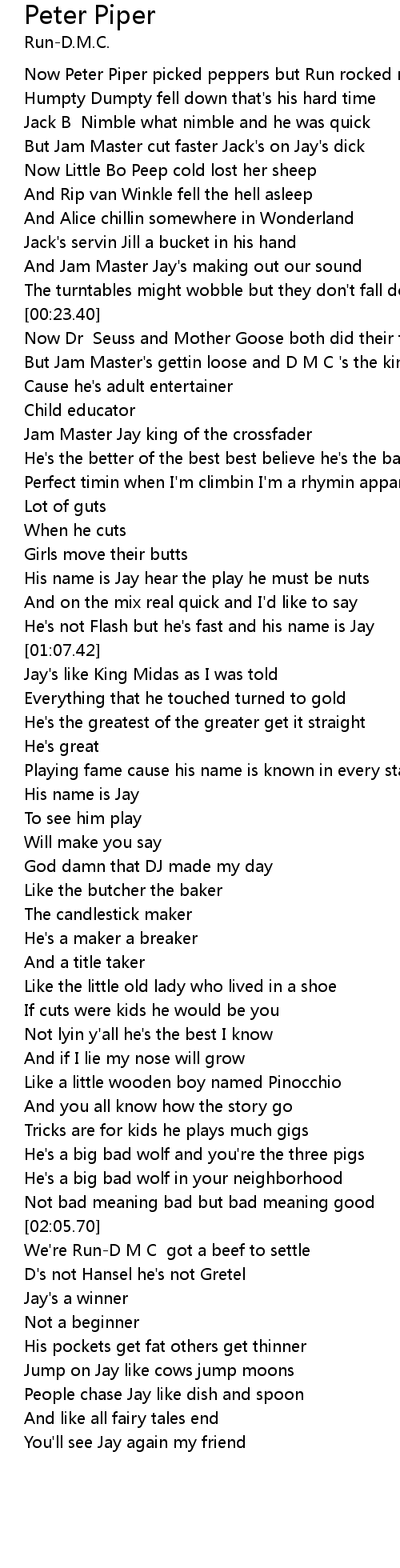 Now Peter Piper picked peppers but Run rocked rhymes |