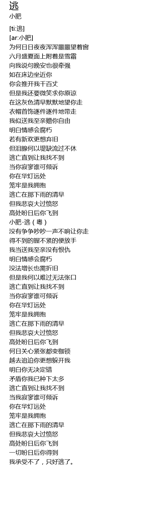 | [01:46.814] | 小肥-逃(粤) |