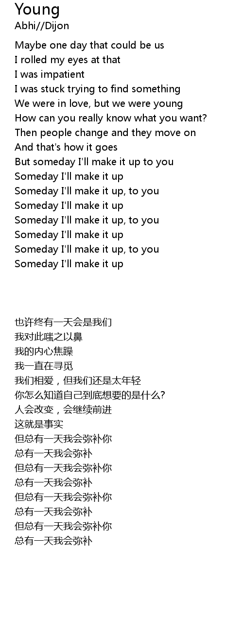 But someday I'll make it up to you |