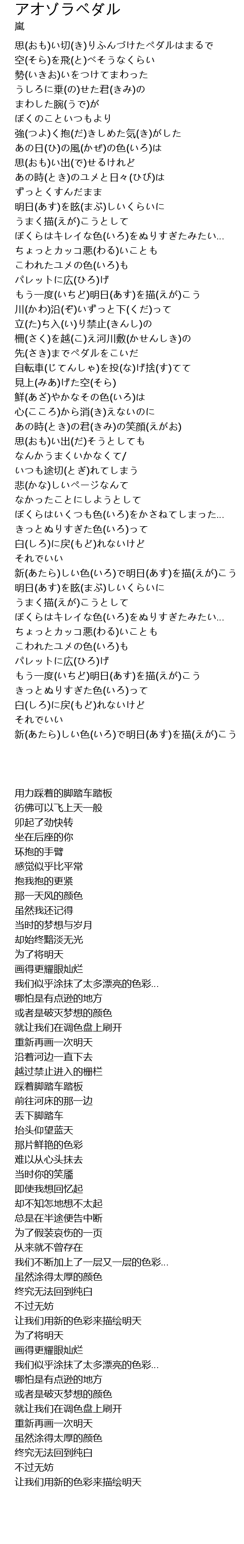 | [03:27.000] | 新(あたら)しい色(いろ)で明日(あす)を描(えが)こう |