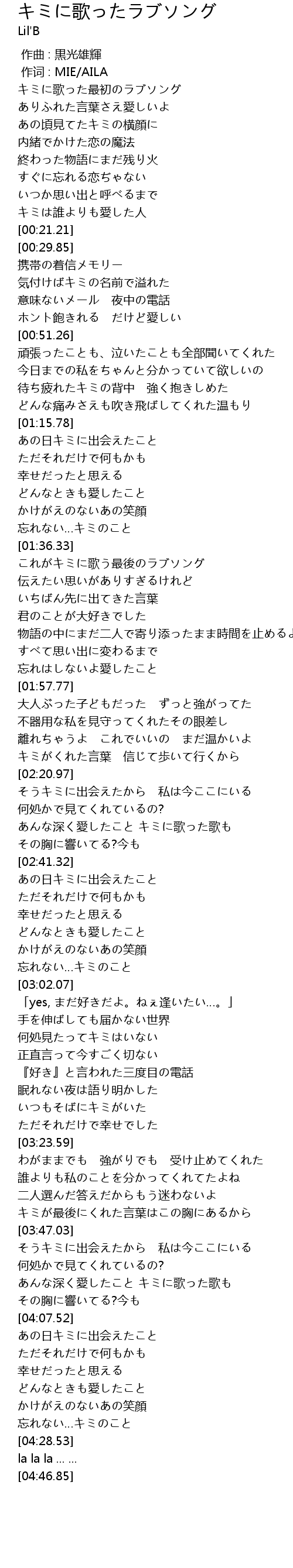 | [03:39.40] | キミが最後にくれた言葉はこの胸にあるから |