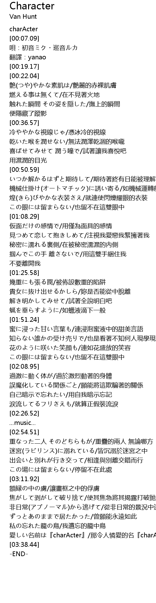 | [03:31.10] | 愛しい名前は『charActer』/那令人憐愛的名『charActer』 |
