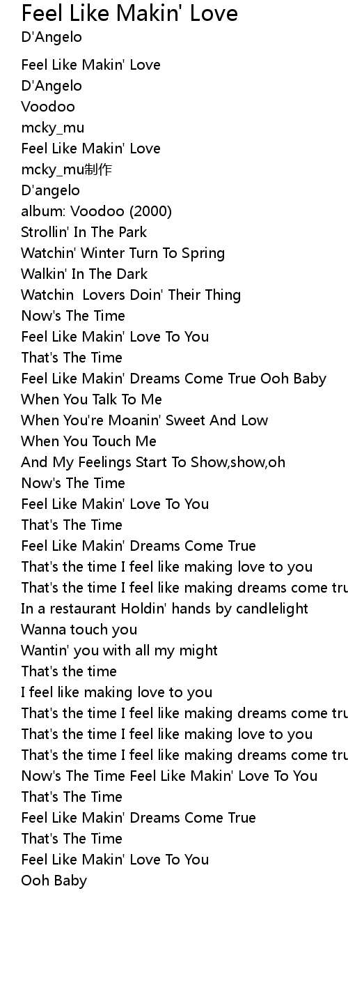 | [00:59.28] | Feel Like Makin' Dreams Come True Ooh Baby |