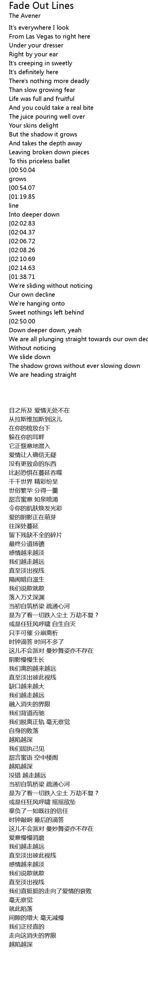 [00:47.69][01:19.85][01:27.93][02:24.30][02:32.65][02:48.22] Into the fade out line