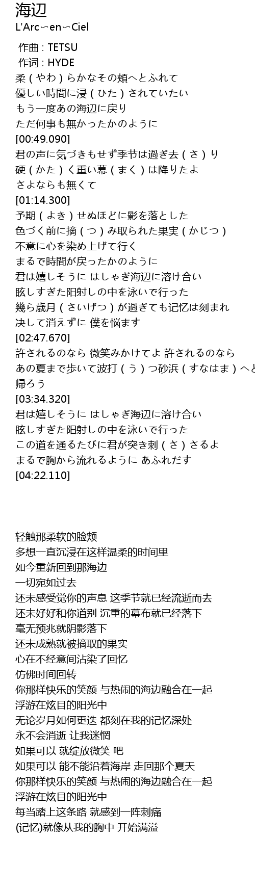 | [03:35.110] | 君は嬉しそうに はしゃぎ海辺に溶け合い |