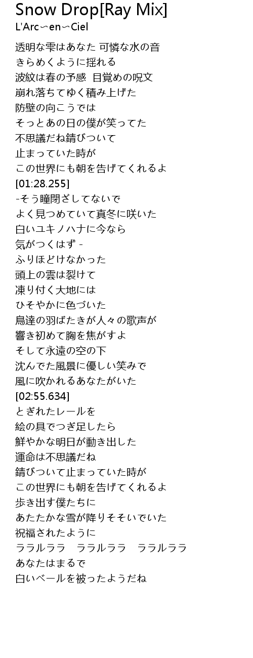 | [03:54.279] | あたたかな雪が降りそそいでいた |