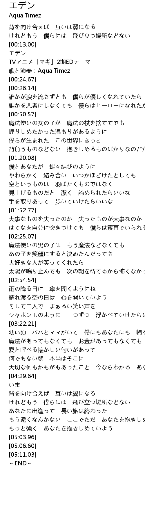| [00:17.14] | TVアニメ「マギ」2期EDテーマ |