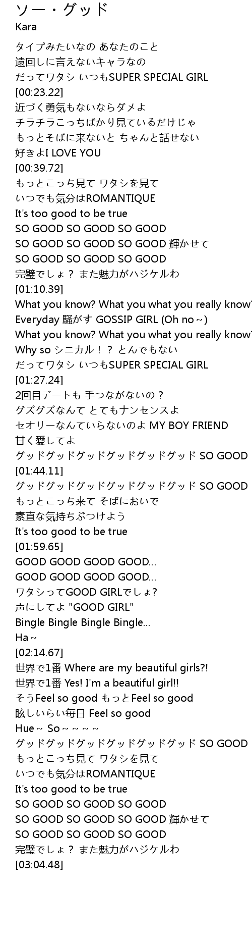 | [02:55.85] | SO GOOD SO GOOD SO GOOD |