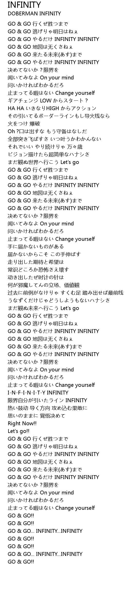 | [02:20.34] | GO GO INFINITY INFINITY |