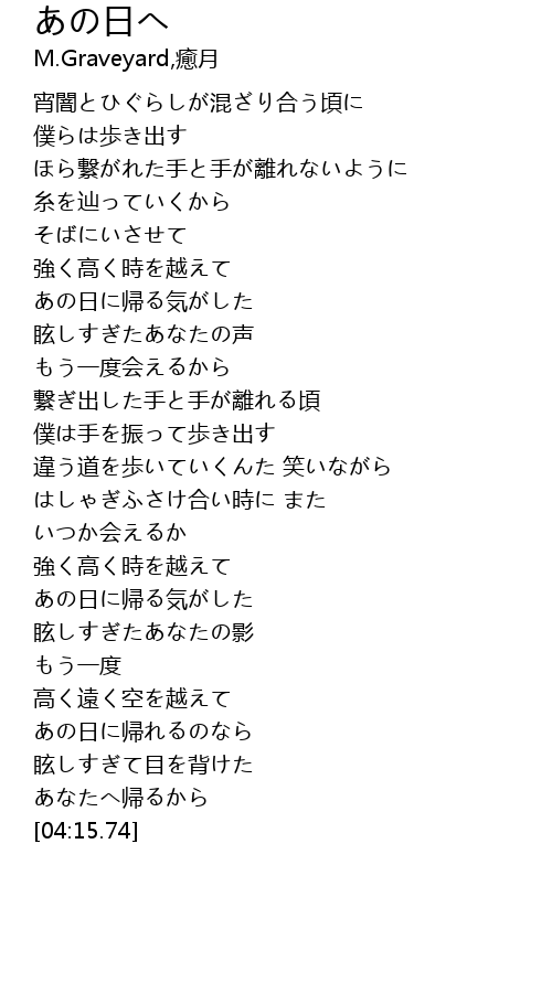 | [02:21.85] | 繋ぎ出した手と手が離れる頃 |