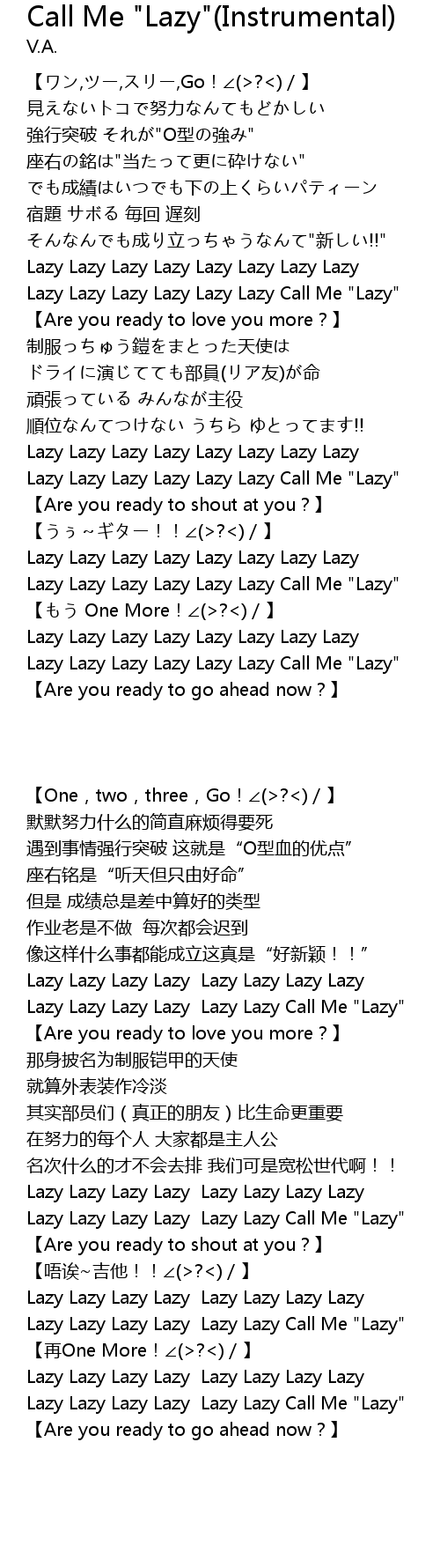 | [00:50.75] | Lazy Lazy Lazy Lazy Lazy Lazy Call Me "Lazy" |