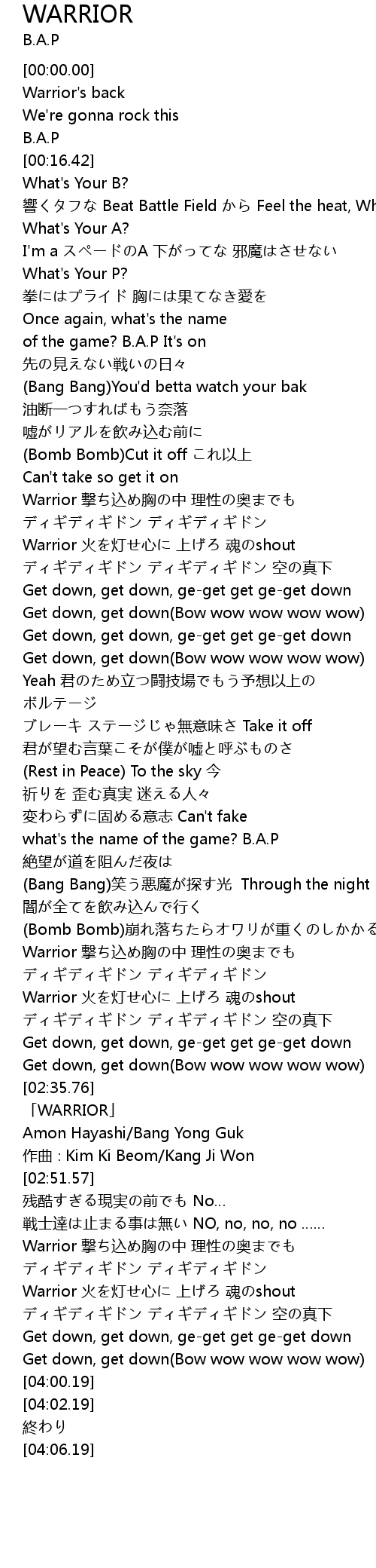 | [02:37.57] | 「WARRIOR」 |