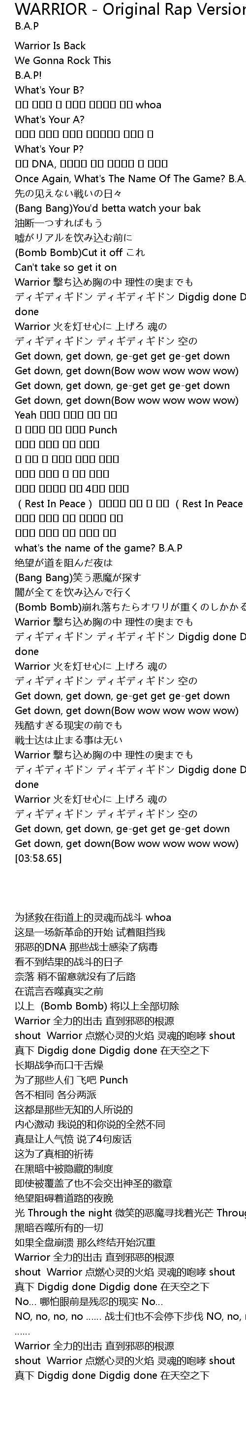 | [00:32.52] | Once Again, What' s The Name Of The Game? B. A. P |