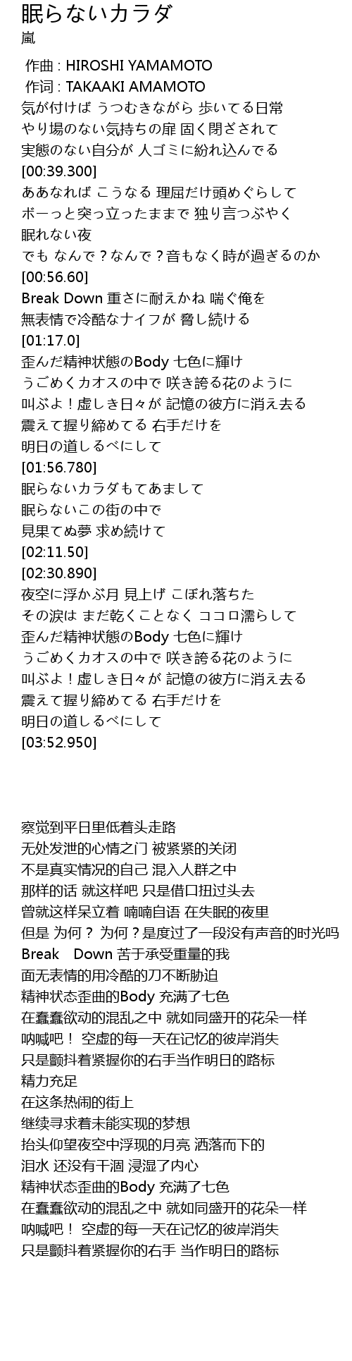 | [00:01.00] | zuò cí : TAKAAKI AMAMOTO |