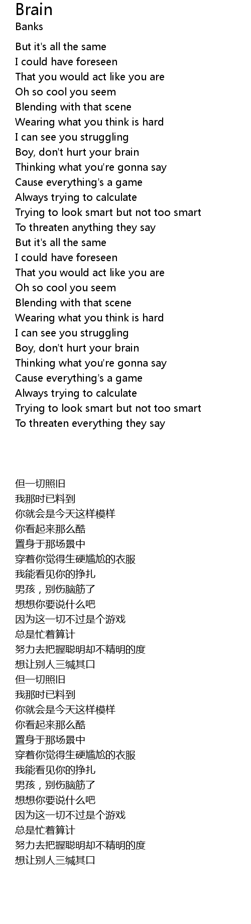 | [01:05.820] | Boy, don't hurt your brain |