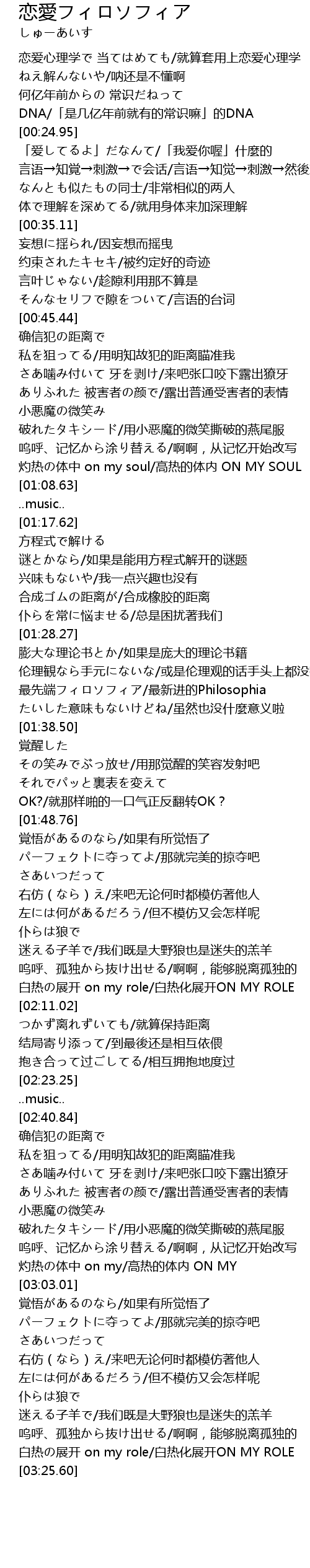 | [00:14.85] | 恋爱心理学で 当てはめても/就算套用上恋爱心理学 |