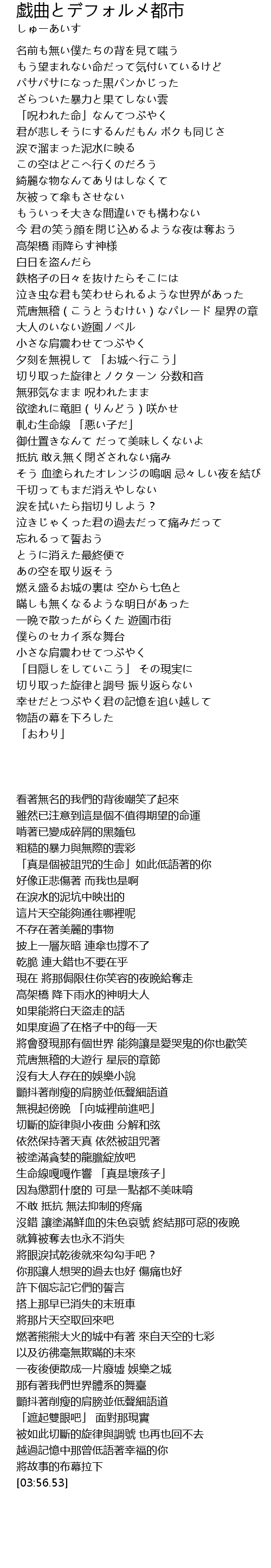 | [02:43.70] | 一晩で散ったがらくた 遊園市街 |