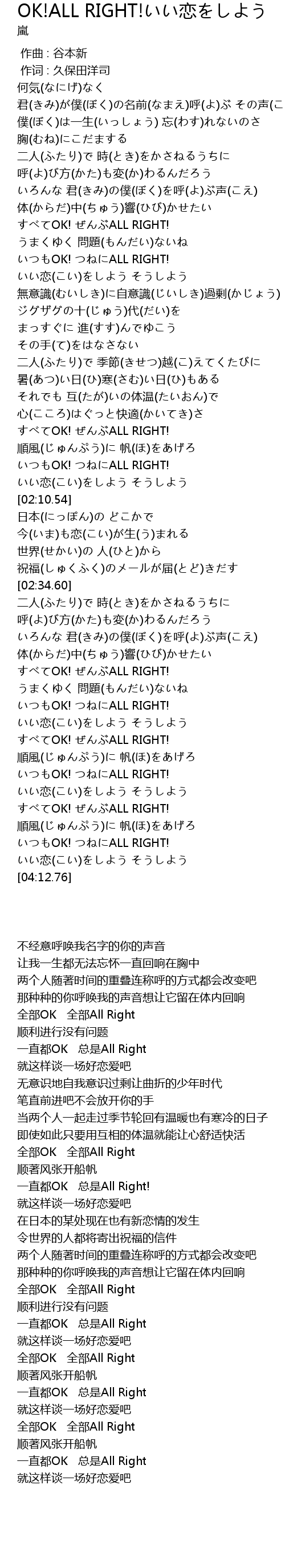 | [04:04.38] | いつもOK! つねにALL RIGHT! |