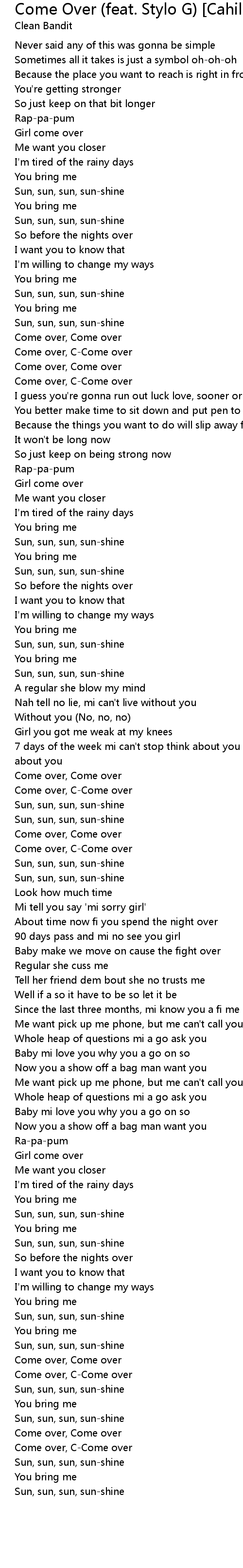Come Over (feat. Stylo G) [Cahill Remix] Lyrics