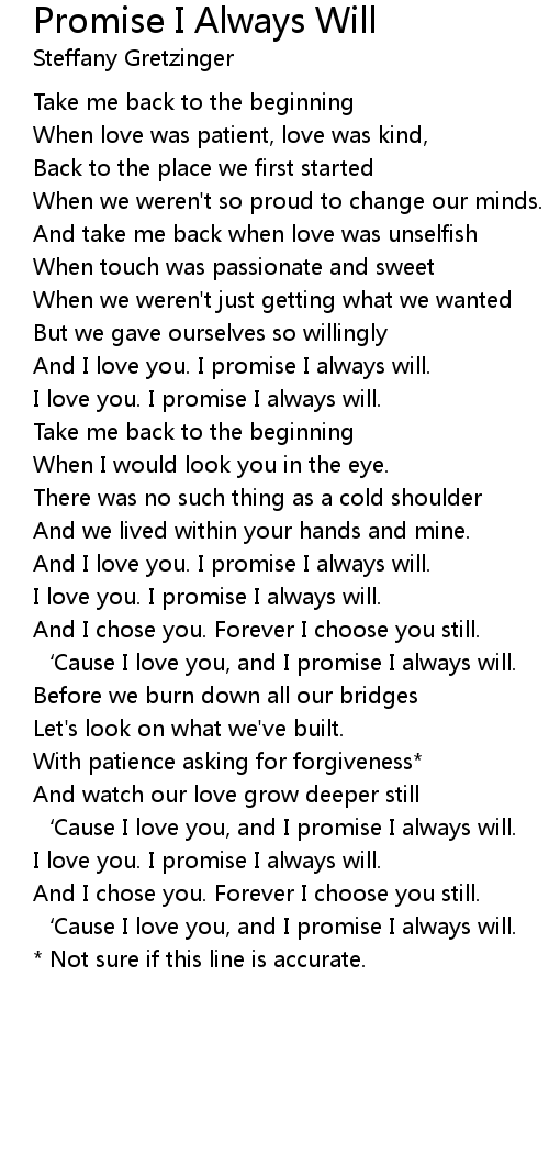 | Song | Promise I Always Will |