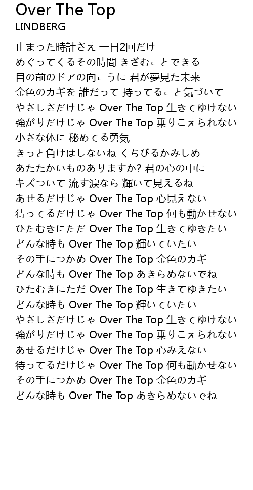 | 待ってるだけじゃ Over The Top 何も動かせない | |