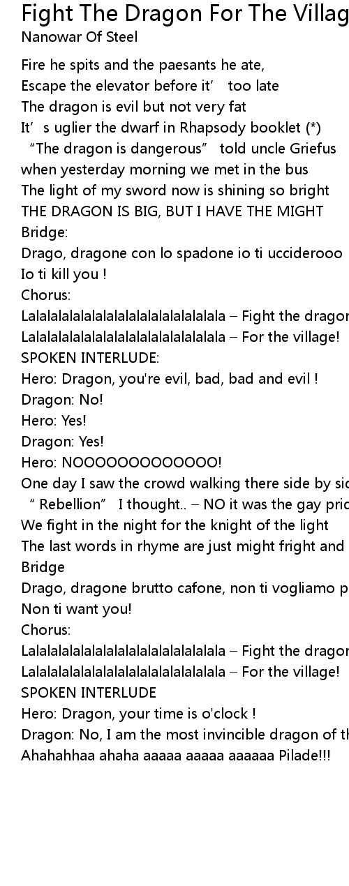 | Lalalalalalalalalalalalalalalalalala – Fight the dragon ! | |