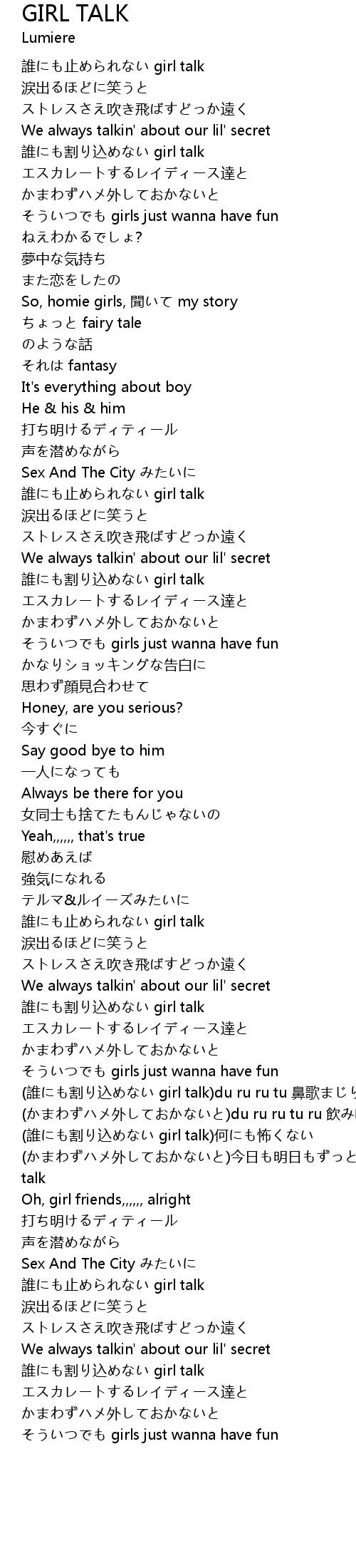 | 誰にも止められない girl talk | |