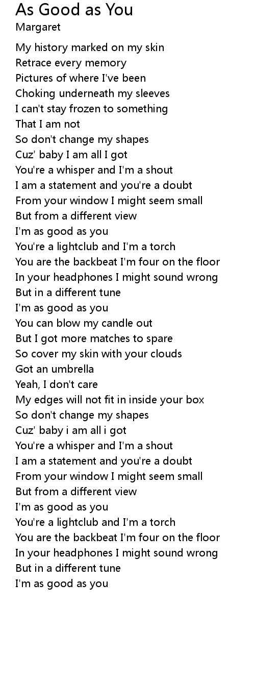 As Good as You Lyrics