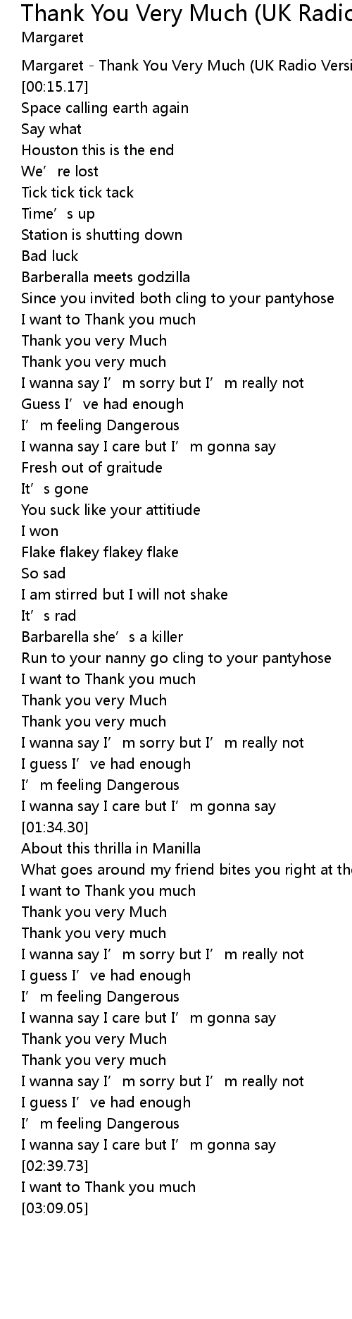 | [00:00.56] | Margaret - Thank You Very Much (UK Radio Version) |