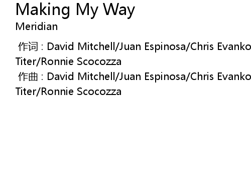 | [00:00.000] | zuò qǔ : David Mitchell Juan Espinosa Chris Evanko Chris Titer Ronnie Scocozza |