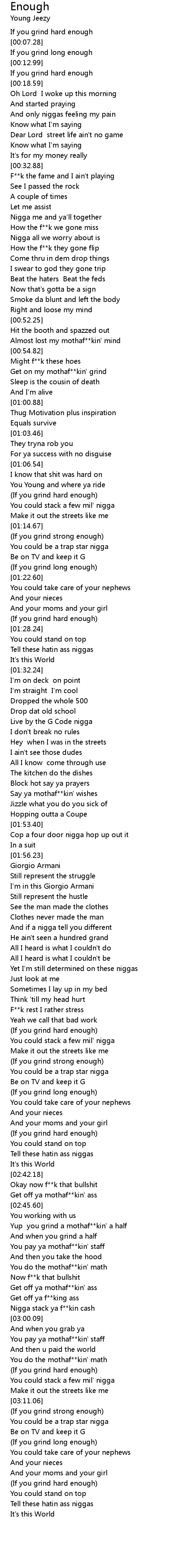 Yup you grind a mothaf**kin' a half |