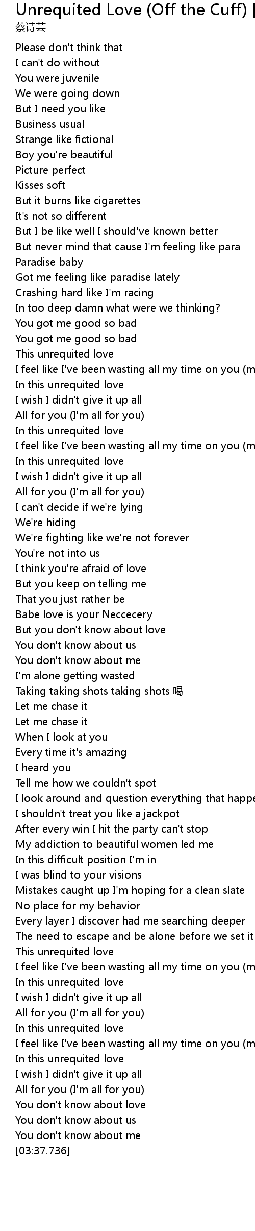 | [02:51.441] | I feel like I've been wasting all my time on you (my time on you) |