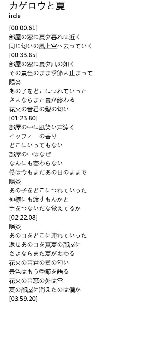 | [02:50.78] | 返せあのコを真夏の部屋に |