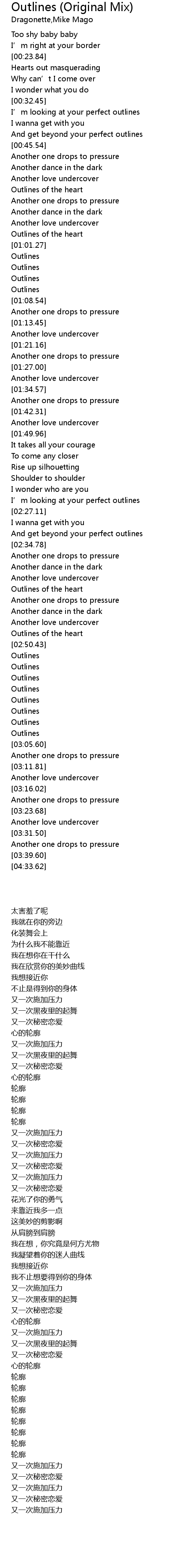 | [00:34.29] | I' m looking at your perfect outlines |