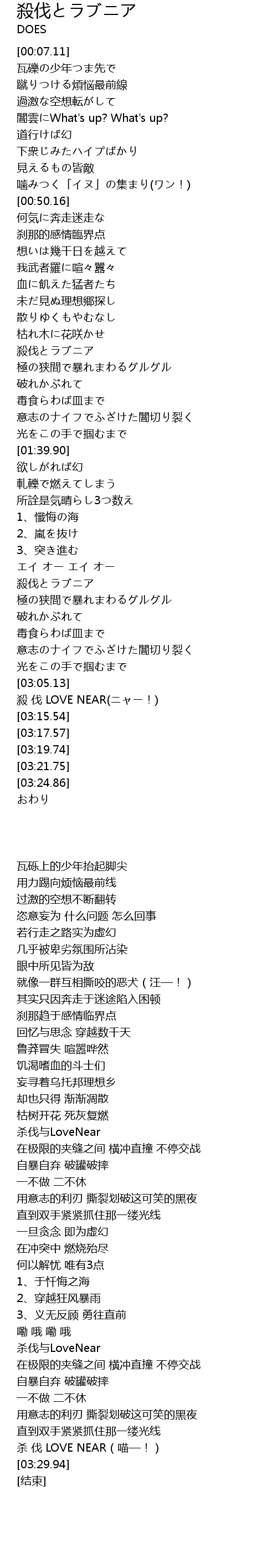 | [03:09.06] | 殺 伐 LOVE NEAR(ニャー!) |