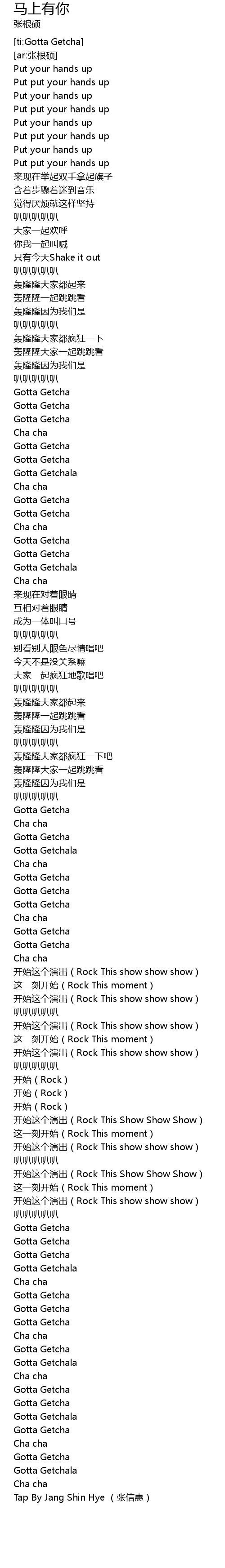 | [02:41.696] | kai shi zhe ge yan chu Rock This show show show |