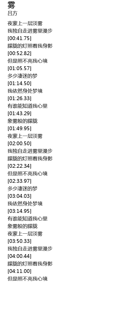 | [03:40.13] | 夜蒙上一层淡雾 |