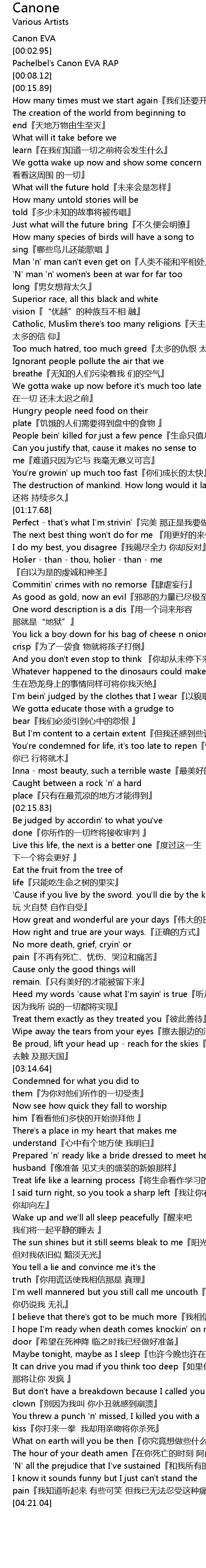 | [00:05.49] | Pachelbel' s Canon EVA RAP |
