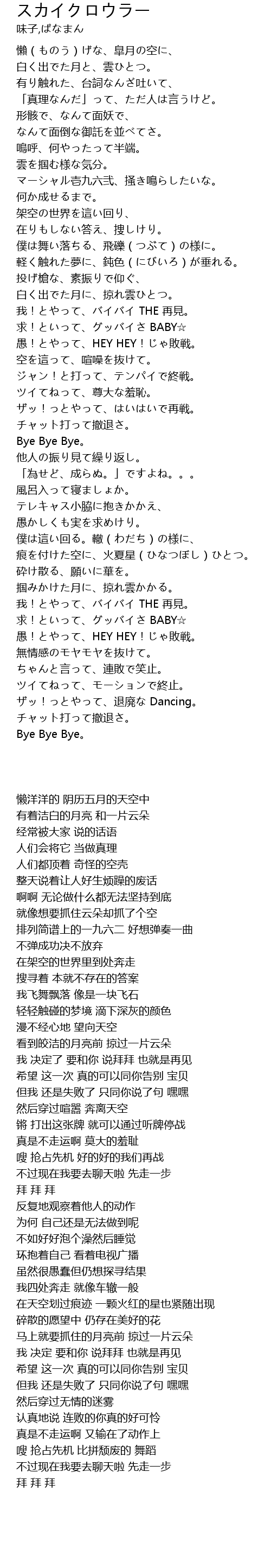 | [03:08.550] | 我!とやって、バイバイ THE 再見。 |