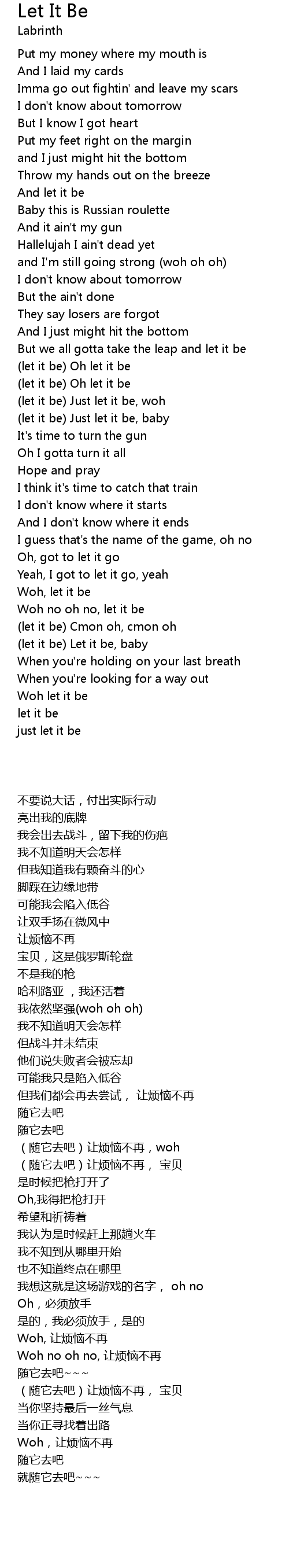 | [02:21.770] | (let it be) Cmon oh, cmon oh |