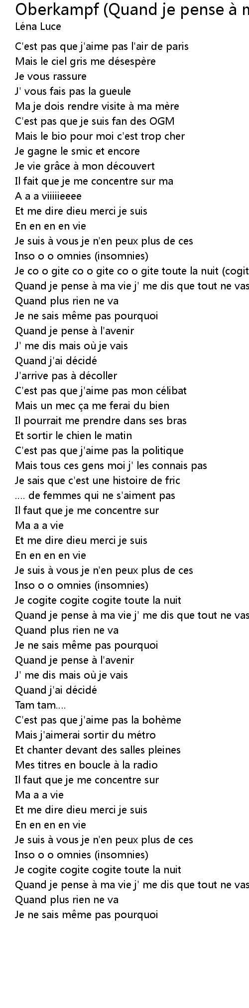 | Song | Oberkampf (Quand je pense à ma vie) |