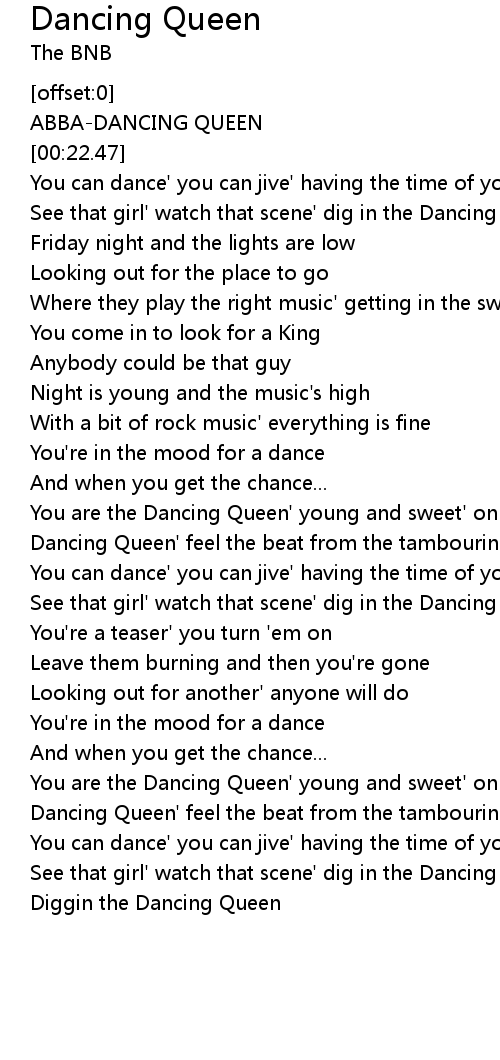 [01:30.69] Dancing Queen' feel the beat from the tambourine