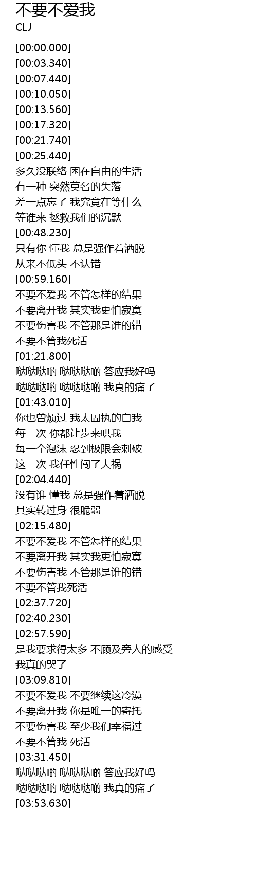 | [00:59.410] | 不要不爱我 不管怎样的结果 |