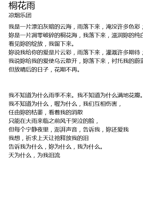 | 天为什么,为我泪流 |