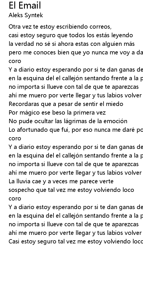 | Otra vez te estoy escribiendo correos, | |