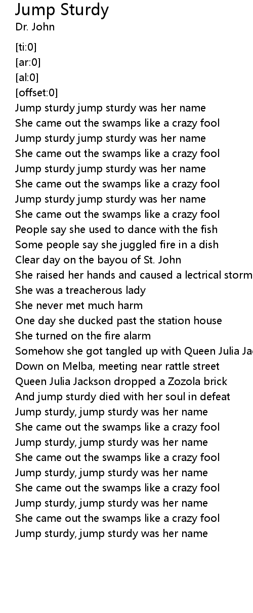 Jump sturdy jump sturdy was her name |