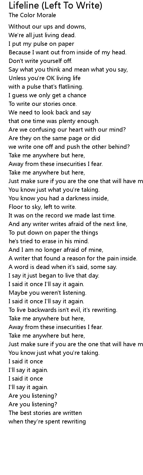 And any writer writes afraid of the next line, |